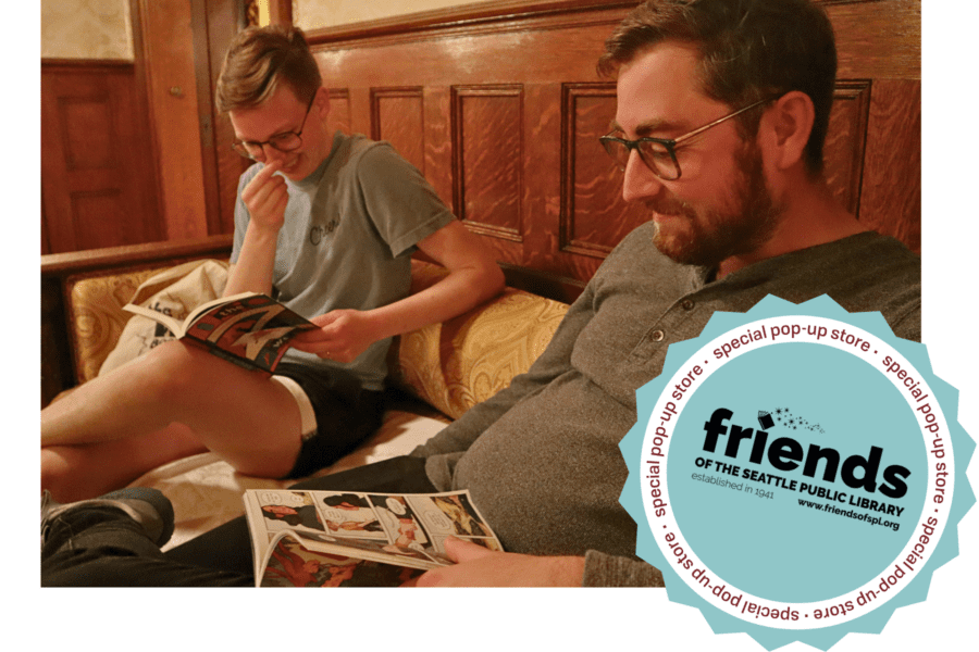 We are thrilled to share that this Silent Reading Night will feature a Friends of The Seattle Public Library pop-up shop! Friends of The Seattle Public Library have been supporting The Seattle Public Library since 1941. Through programs, advocacy, and events they help keep The Library and literacy at the center of the Seattle community. Browse their awesome collection of book-themed goodies and support Seattle’s public library system with your purchase.