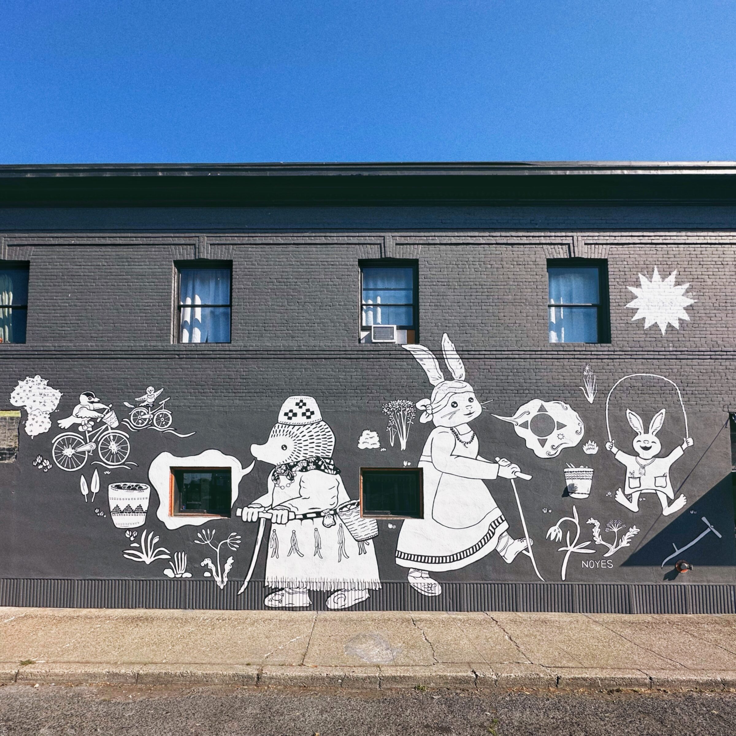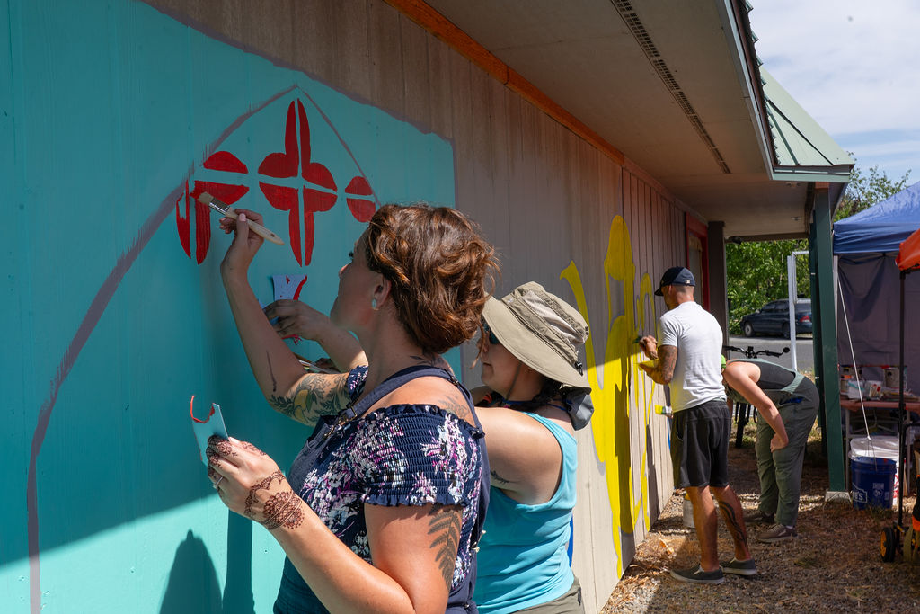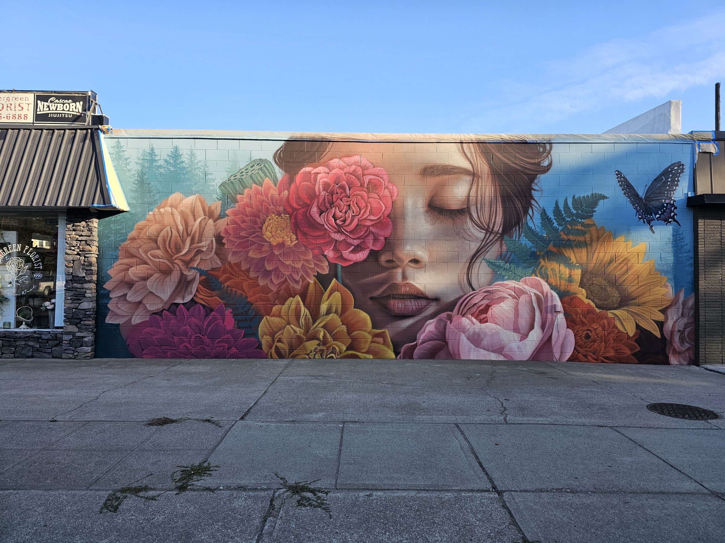 The Kehoe Building’s activation grant supported the commissioning of “Spring Mural,” a large-scale public artwork by local artist Emma Noyes (Confederated Tribes of the Colville Reservation / Sinixt and Colville Tribes), completed in June 2025 on the south side of the Kehoe Building in the heart of Hillyard. This project had an immediate and significant impact, coinciding with the launch of the neighborhood’s first Third Thursday Art Walk and contributing to the visual excitement that led to the district becoming Spokane’s first Certified Creative District. The mural has already become a celebrated cultural waypoint on Market Street, drawing onlookers and photographers, generating multiple positive features in local media and social media, and serving as a vibrant, inviting visual representation of the creative spirit of Hillyard.