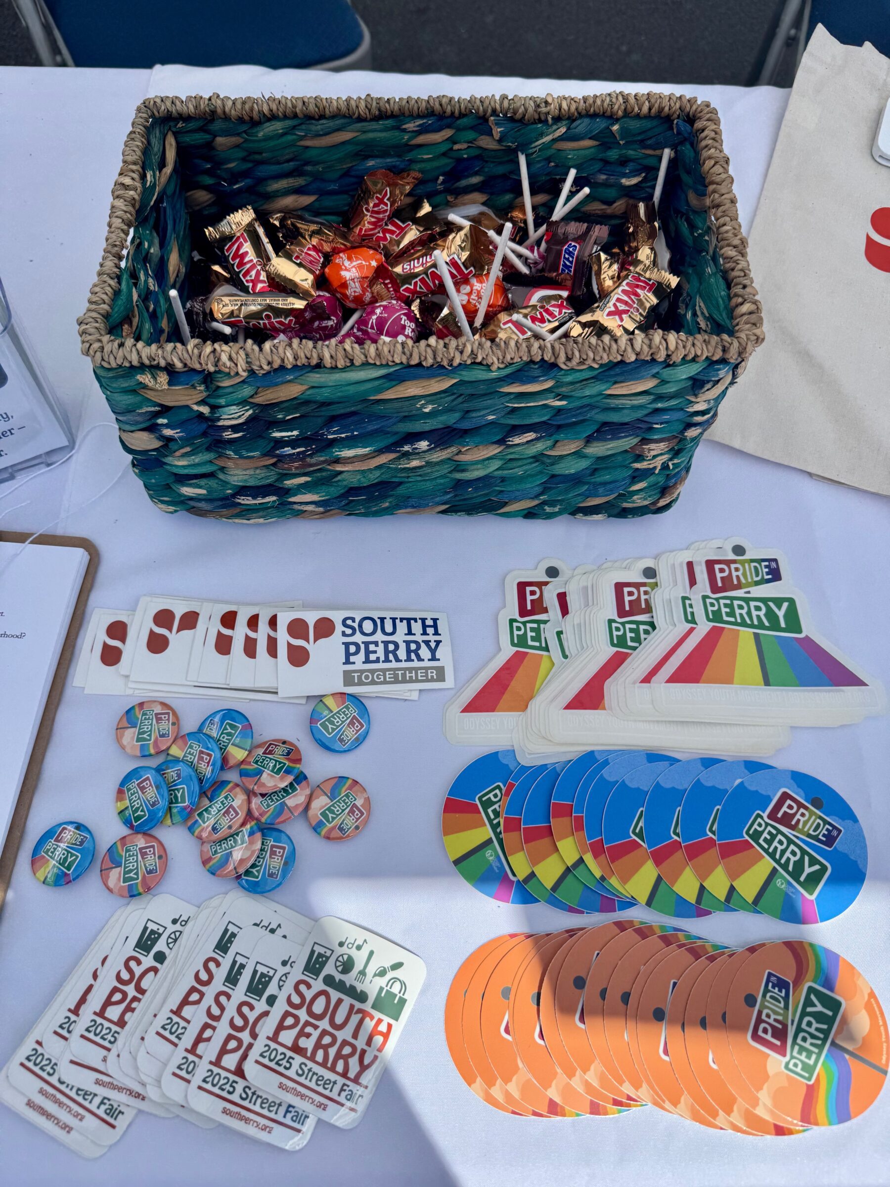 Through successful grant funding for essential promotional materials, South Perry Together directly engaged hundreds of neighbors at three summer events, gathering crucial feedback to commission new public art (like banners and murals) and inspiring volunteer participation for the annual South Perry Street Fair. These materials ensure the district can maintain this vital, direct community connection at future events, helping to continually enrich and grow the neighborhood.
